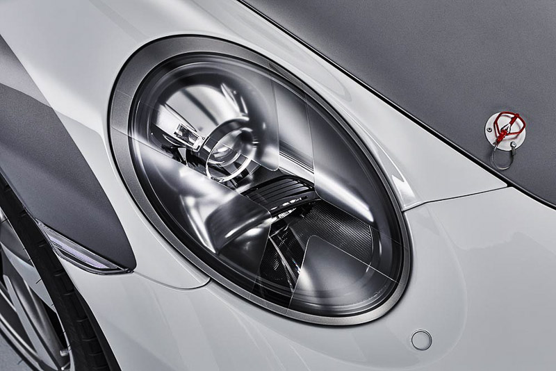Now in 3.8L form, the engine features twin turbochargers with an electric wastegate. Bespoke air to water intercoolers are mounted inside the intake plenums. The ‘shark fin’ on the rear fender is reimagined as an intake and supplies cold air to the engine bay to optimize combustion and cooling performance. In response to owners’ preferences, the study enables power outputs starting at 450 HP.
